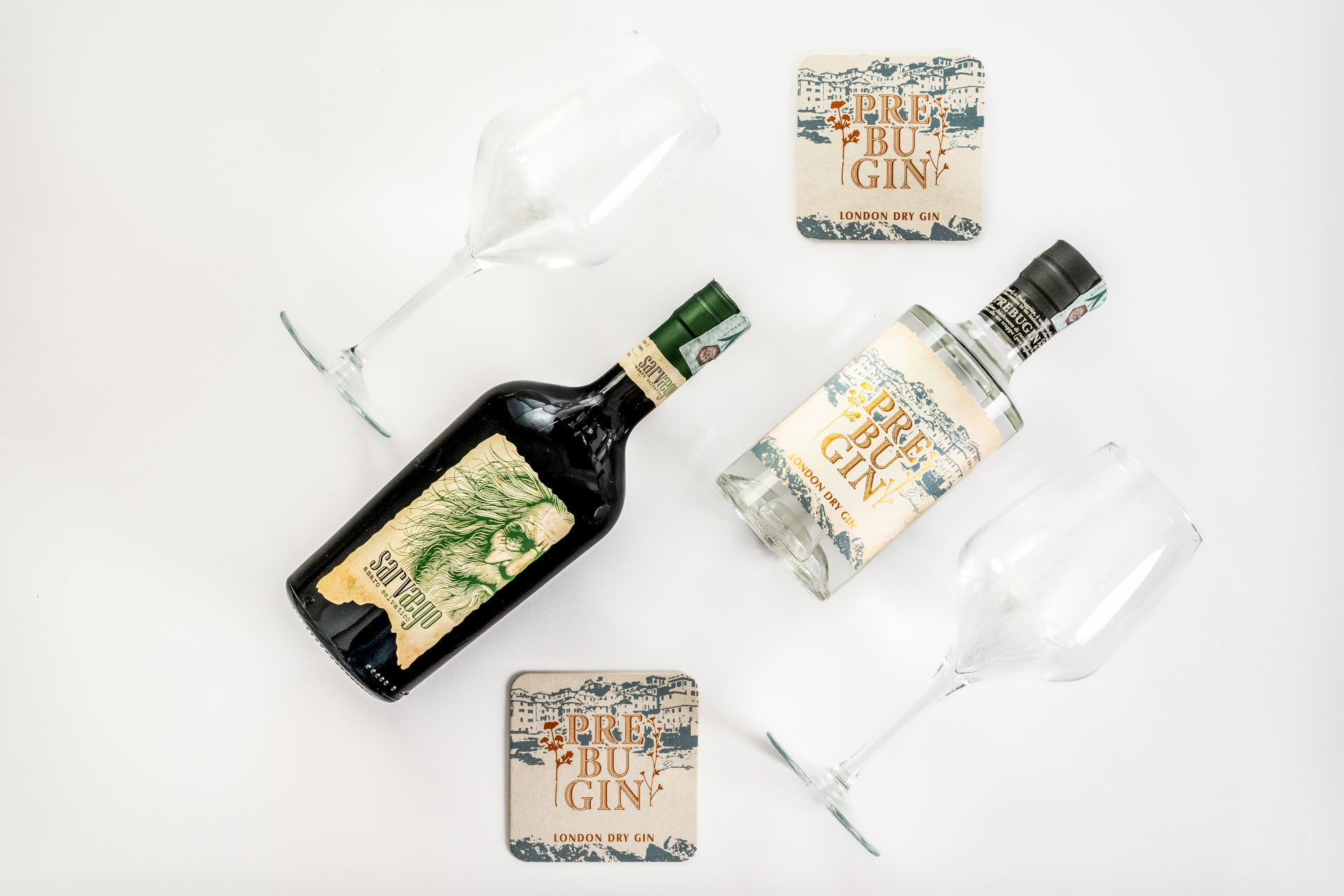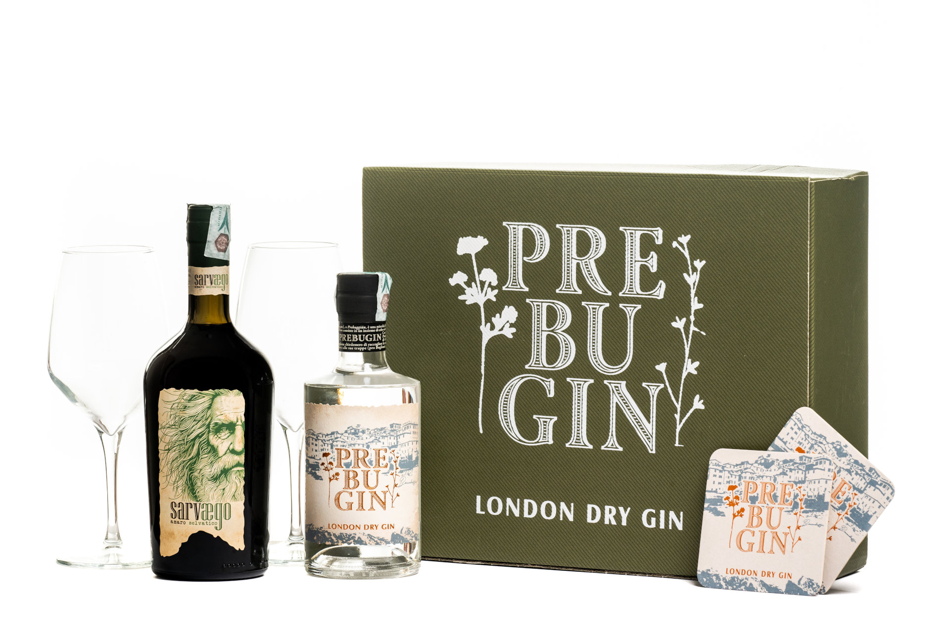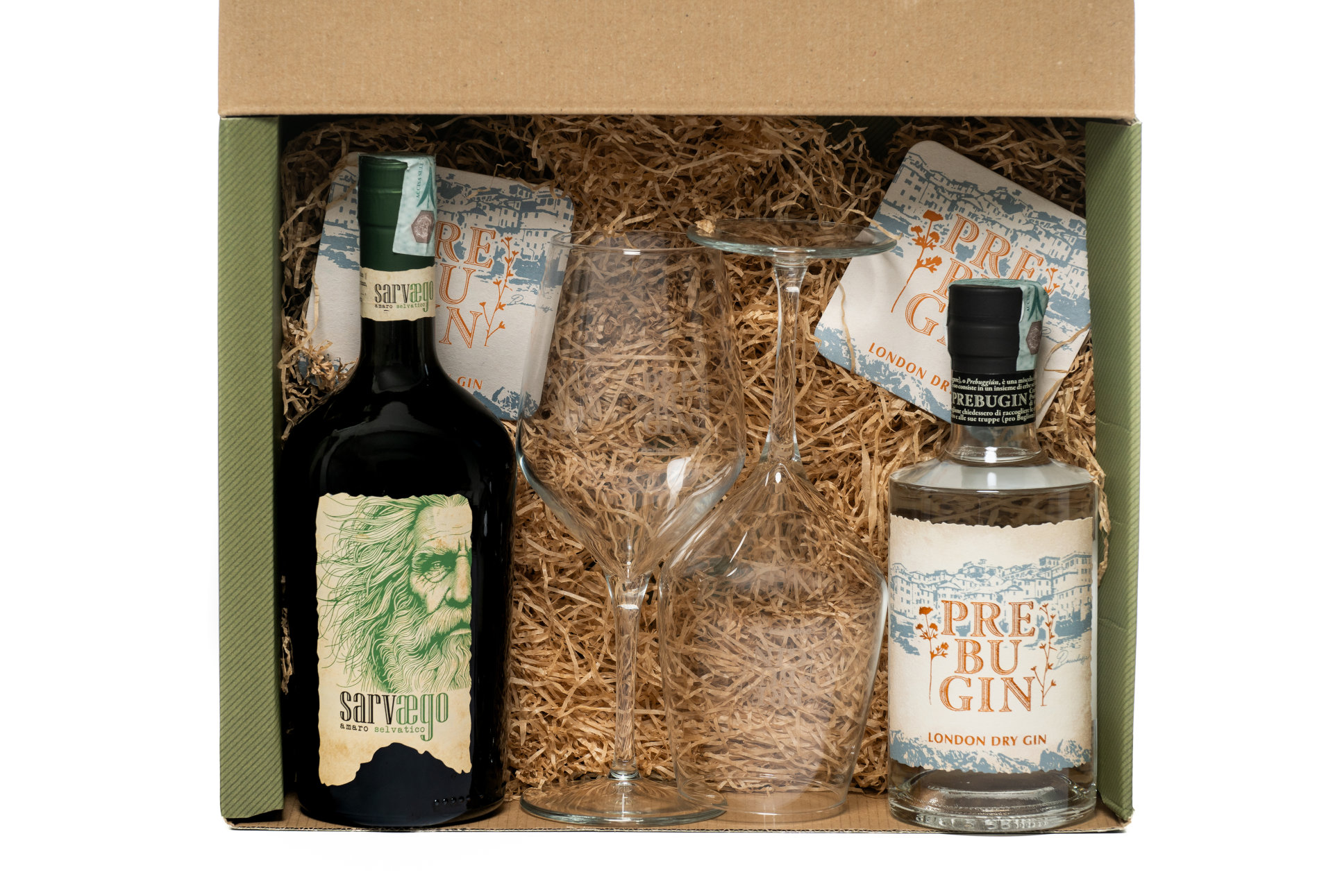 1 Bottiglia Gin, 1 Bottiglia Amaro 2 Bicchieri, Brochure, Sottobicchieri